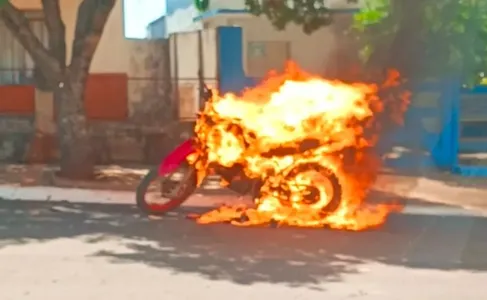 Motocicleta pega fogo e fica totalmente destruída em cidade da região