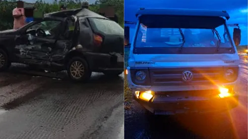 Veículo de passeio foi atingido na lateral por um caminhão durante tentativa de conversão no município de Cruzmaltina