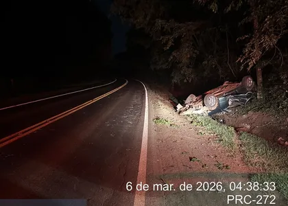 Motorista fica ferido após capotar carro na PRC-272 em Faxinal