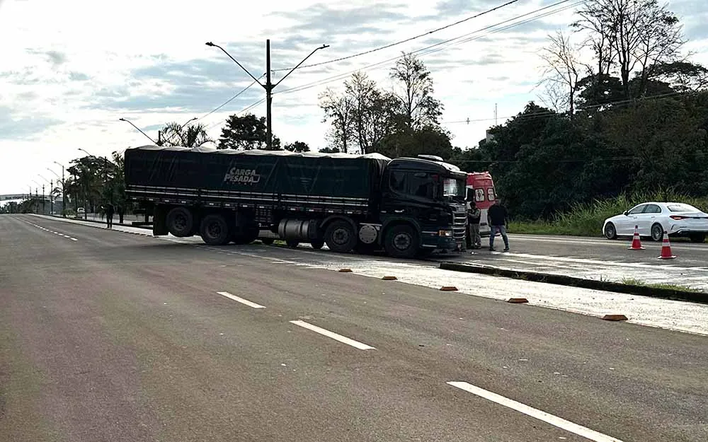 A equipe da Polícia Militar (PM) foi acionada por volta das 16h20. No local, os policiais conversaram o condutor do caminhão Scania P310, envolvido no acidente. Ele contou que tentou fazer uma conversão à esquerda quando bateu em um Fiat Uno Mille Economy.