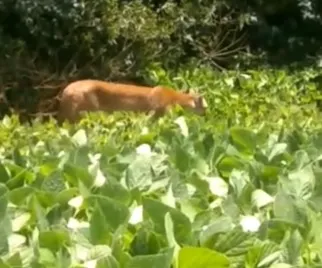 Uma cena no mínimo inusitada foi flagrada recentemente na Cachoeira Véu de Noiva, em Rio Branco do Ivaí, cidade localizada no Vale do Ivaí, Paraná. Uma onça parda, também conhecida por puma ou suçuarana, foi vista "desfilando" em meio à plantação de soja na Fazenda Cachoeira.
