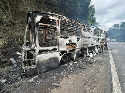 Ônibus pega fogo na BR-376 entre Ortigueira e Mauá da Serra