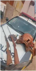 No local, onde também funciona um bar, foram encontradas duas espingardas em plenas condições de uso, além de pólvora, bolas de chumbo e uma sela de cavalo. Porém, o animal não foi encontrado durante a busca pela propriedade.