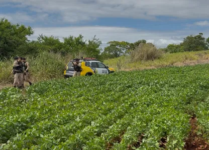 Após a colisão, os suspeitos abandonaram a motocicleta danificada e um dos calçados na rodovia, fugindo a pé para uma área de mata densa e plantações na localidade conhecida como Água do Gavião.