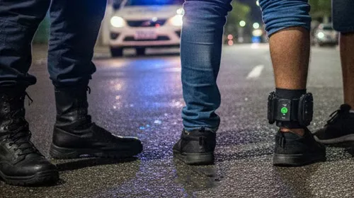 Durante a identificação, os policiais verificaram que um dos homens usava tornozeleira eletrônica. Ele só poderia estar na rua até as 20 horas, o que caracterizou o descumprimento da medida.