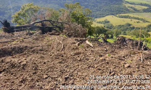 A Polícia Militar Ambiental (PMA-PR), confirmou nesta quarta-feira (26) a constatação de uma situação de desmate de vegetação nativa no bairro rural Nova Aliança, no município de Ariranha do Ivaí. Segundo relato da PMA, a área comprometida chega a 0,21 hectare de RL e APP (Área de Preservação Permanente) em meio a limpeza de um pasto.
