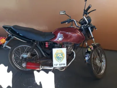 A PM realizava patrulhamento pela Rua Curitiba, no centro do município, quando flagrou o jovem conduzindo a moto.