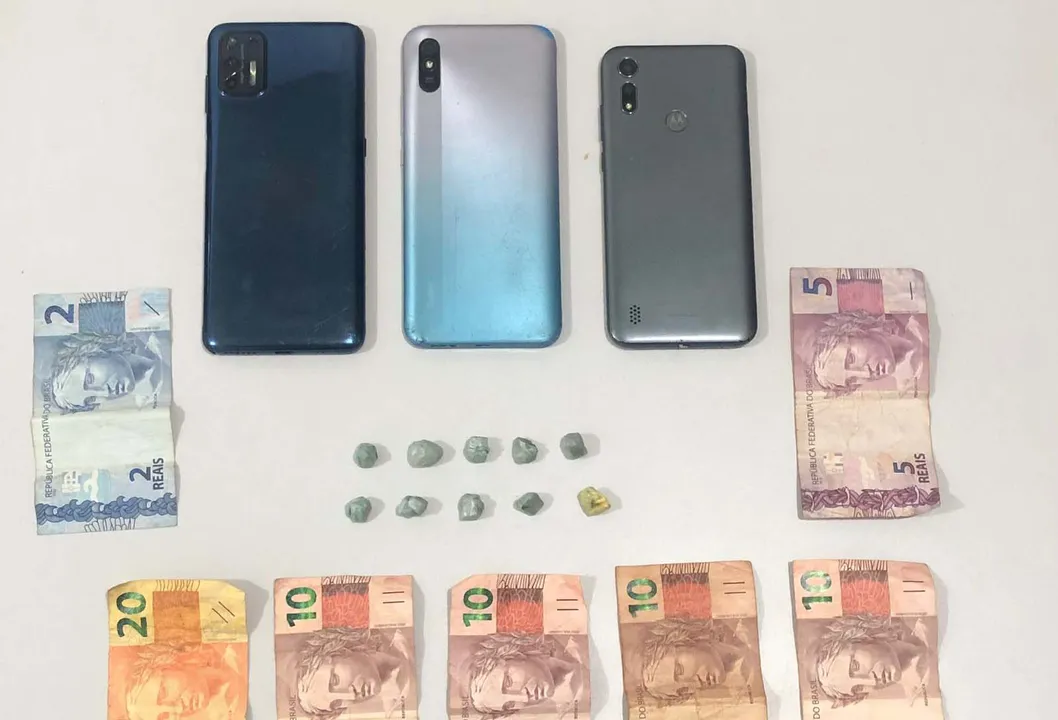 Com os suspeitos, os agentes apreenderam 10 pedras de crack, R$ 68,00 em dinheiro e três celulares.