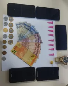 Com um deles foi localizado 1,7 grama de crack e durante vistoria na casa foi localizado mais 8 pinos cheios de cocaína , totalizando 6,1 gramas. A droga estava escondida na cozinha, dentro de um pote com arroz.