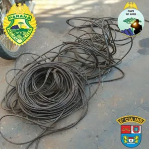 Conforme a Polícia Militar, a fiação apreendida havia sido furtada no Parque Ambiental Jardim