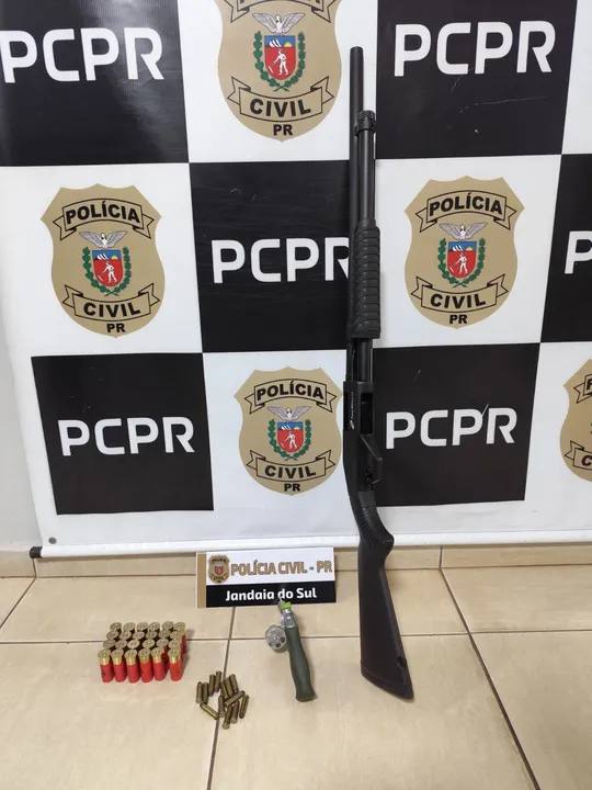 Uma operação da Polícia Civil de Jandaia do Sul resultou na apreensão de duas armas de fogo de grosso calibre e diversas munições na manhã desta quarta-feira (7). A ação ocorreu no município de São Pedro do Ivaí, durante o cumprimento de um mandado de busca e apreensão na residência de um homem de 47 anos.