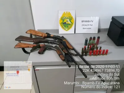 A Polícia Ambiental, da 2ª CIA 3ºPel, de Apucarana, apreendeu neste sábado (5), em Marumbi, armas e munições. A ocorrência está andamento.