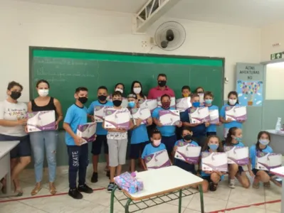 Os kits de materiais envolvem um investimento de R$ 140 mil. Cada kit é composto por caderno de caligrafia; caderno de Inglês; 4 livros de literatura; diário e livro de educação financeira.