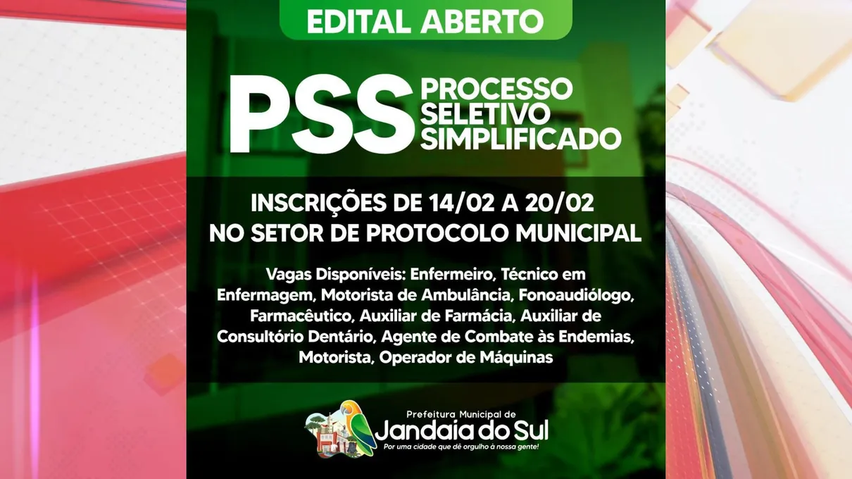 A Prefeitura de Jandaia do Sul anunciou a abertura de um Processo Seletivo Simplificado (PSS) para a contratação temporária de profissionais em diversas áreas.