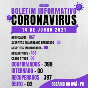 A secretaria Municipal de Saúde de Rosário do Ivaí, confirmou que na última segunda-feira (14) a cidade zerou os casos de Covid-19. No município, foram registrados dois óbitos de idosos que não resistiram as complicações da doença.