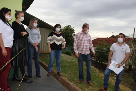 O prefeito Carlos Gil, diretor do Departamento de Obras, Bruno Montoro, e a presidente da Câmara de Vereadores, Gertrudes Bernardy, conferiram o projeto e analisaram a ampliação da Casa de Vivência acompanhados pela diretora do Departamento de Assistência Social, Flávia Kuss, e a coordenadora da Casa de Vivência, Rosangela Lima.