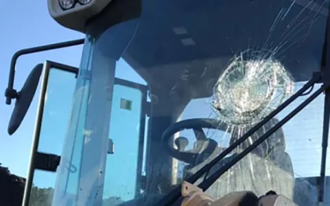 Em dado momento, o rapaz se exaltou e jogou um pedaço de pau em seu trator, vindo a quebrar o vidro.