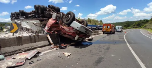 De acordo com a Polícia Rodoviária Federal (PRF), a cabine da carreta atingiu a mureta de proteção que fica no meio da rodovia, ficando completamente destruída. O motorista ficou preso nas ferragens e precisou ser retirado pelo Corpo de Bombeiros.