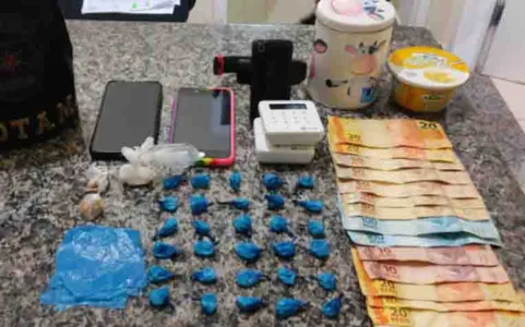 Em buscas pela casa foi encontrado em um dos cômodos, dois potes em locais diferentes, ambos com várias buchas de cocaína, sendo 20 em um pote e nove em outro com peso total 13,400 gramas.